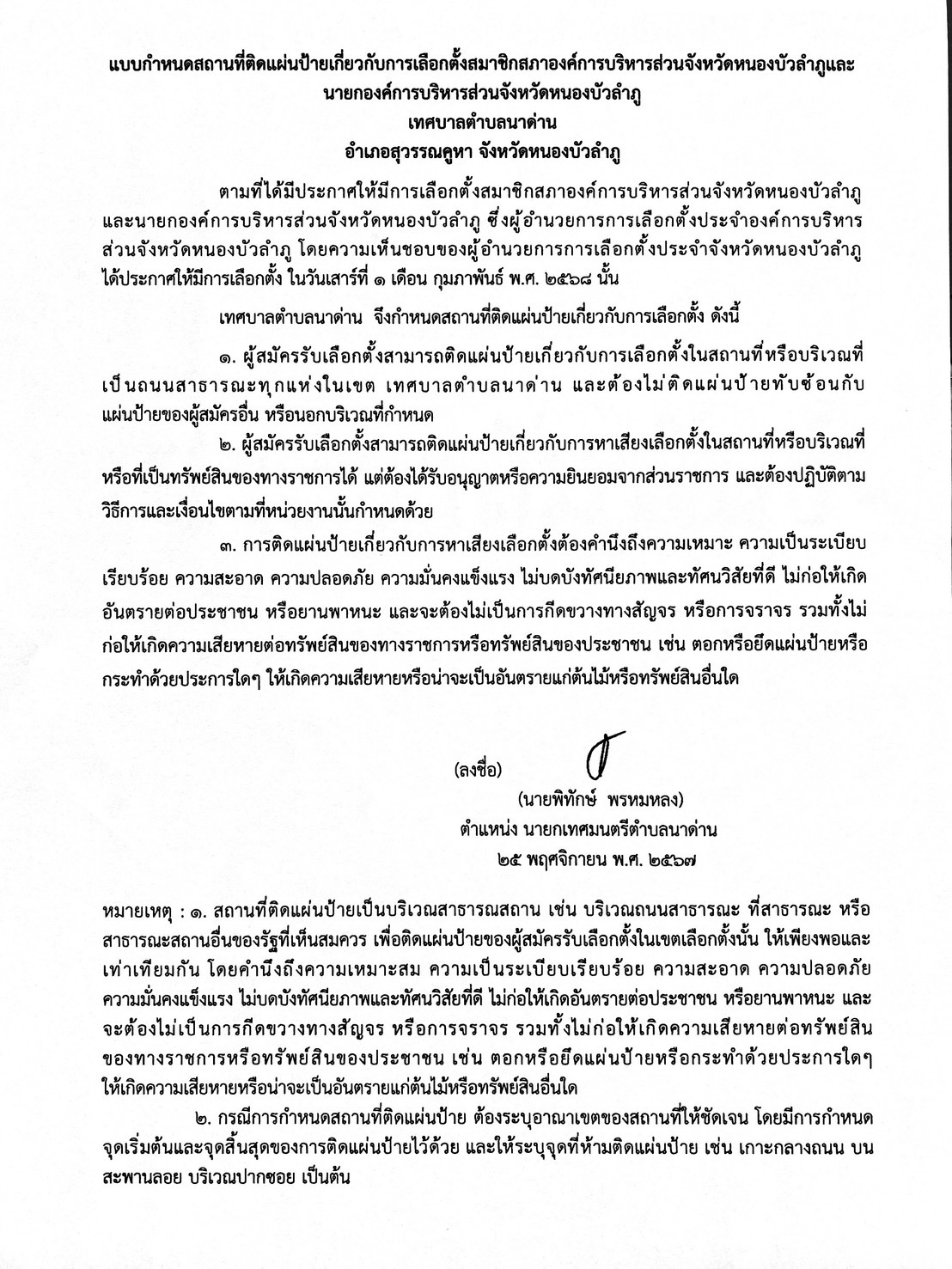 ประกาศผู้อำนวยการการเลือกตั้งประจำเทศบาลตำบาตำบลนาด่าน อำเภอสุวรรณคูหา จังหวัดหนองบัวลำภู เรื่อง ให้มีการเลือกตั้งสมาชิกสภาเทศบาลตำบลนาด่าน |