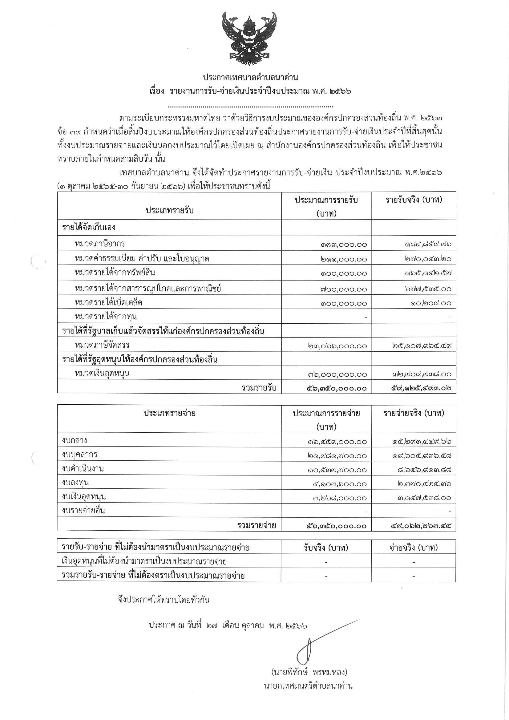 ประกาศเทศบาลตำบลนาด่าน เรื่องรายงานเงินประจำปีงบประมาณ 2567 |